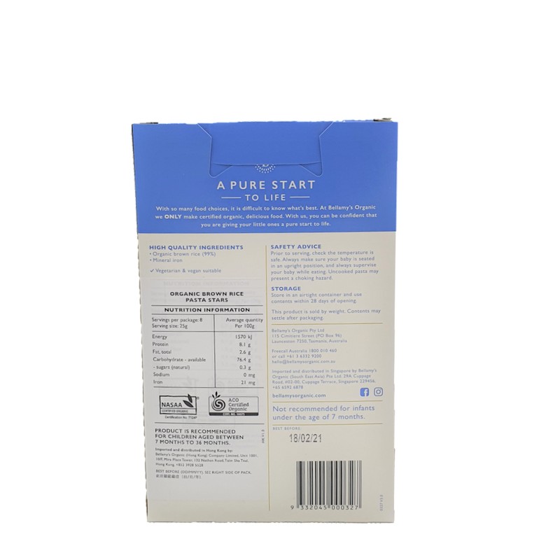 BELLAMY'S ORG PASTA STARS 200 GM
