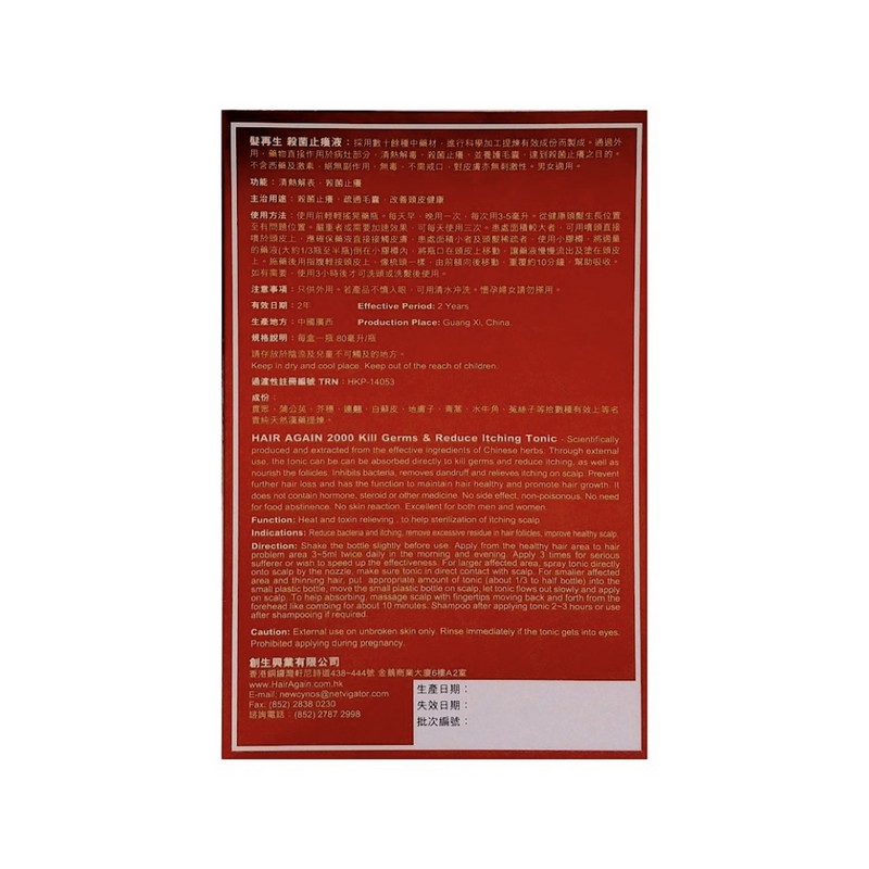 HAIRAGAIN 2000 HAIRAGAIN KILL GERMS TONIC 80 ML