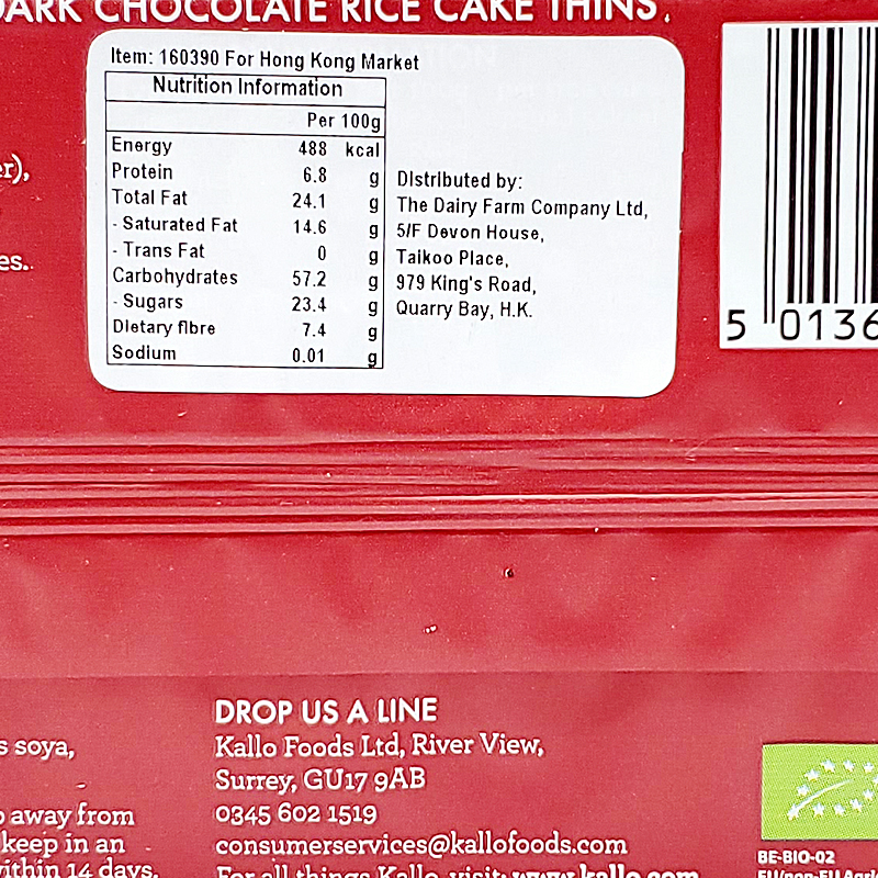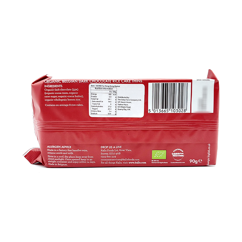 KALLO THIN DARK CHOCOLATE RICE CAKE 90 GM