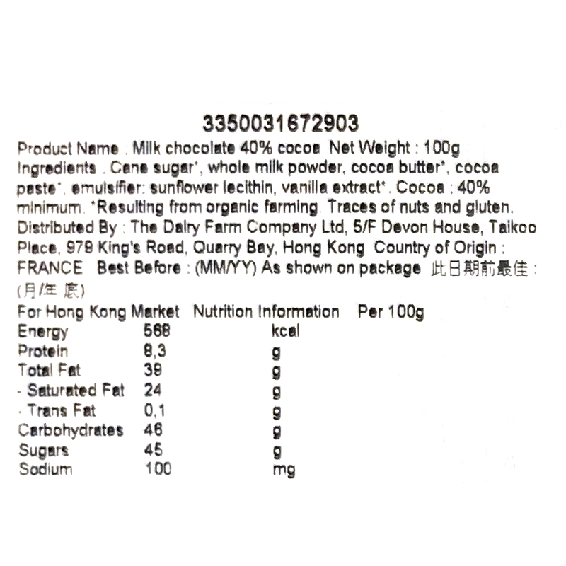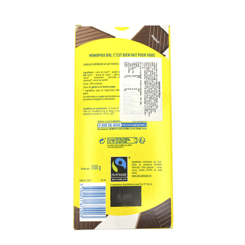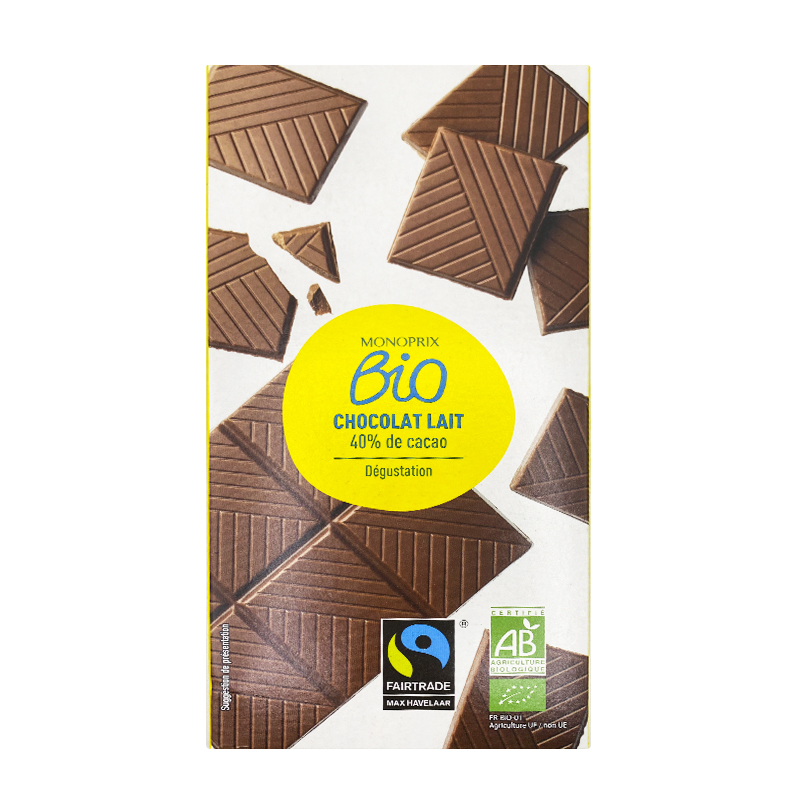 MONOPRIX BIO ORGANIC MILK CHOCOLATE 100 GM