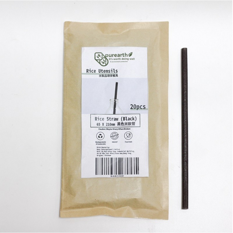 PUREARTH RICE STRAW (BLACK) 21CM 20 PC