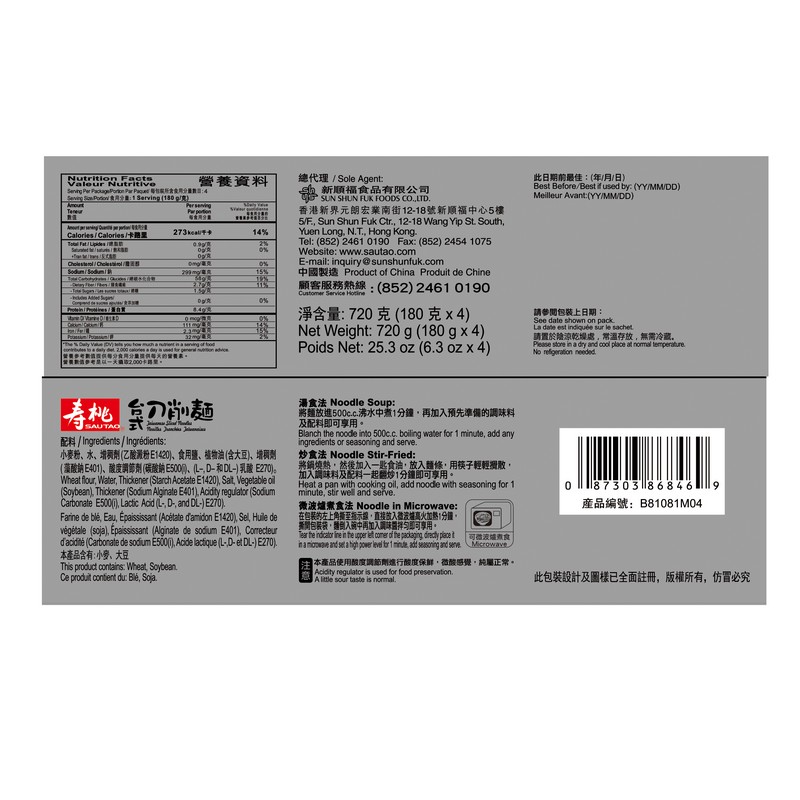 SAU TAO TAIWANESE SLICED NOODLE 4 X 180 GM