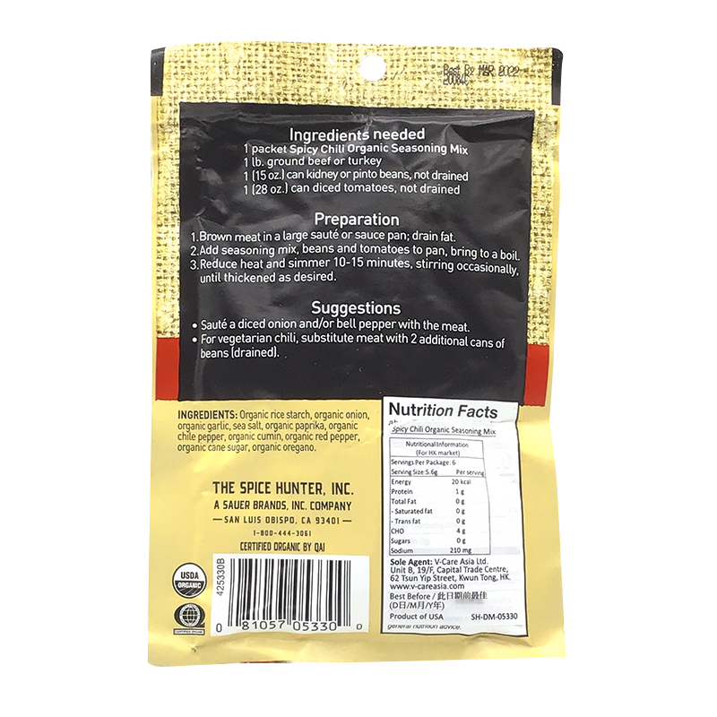 SPICE HUNTER ORGANIC SPICY CHILI SEASON MIX 1.2 OZ