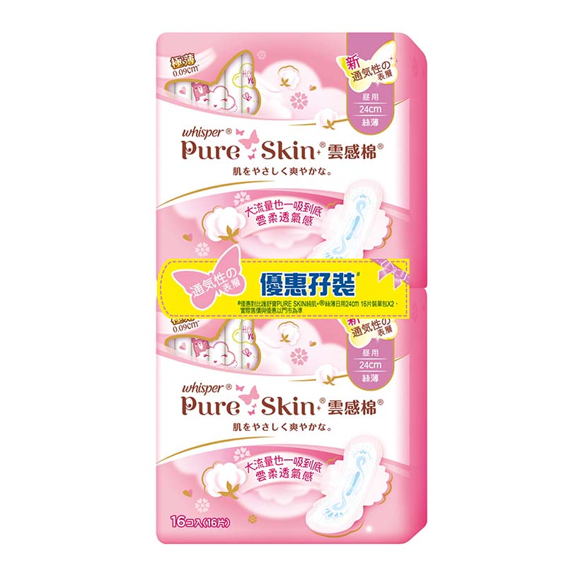 WHISPER PURE SKIN SLIM 24 CM TWIN PACK 16 PC