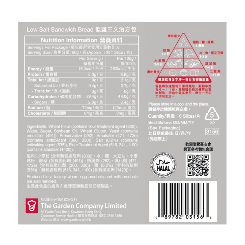 嘉頓 低鹽三文治方包 1 EA