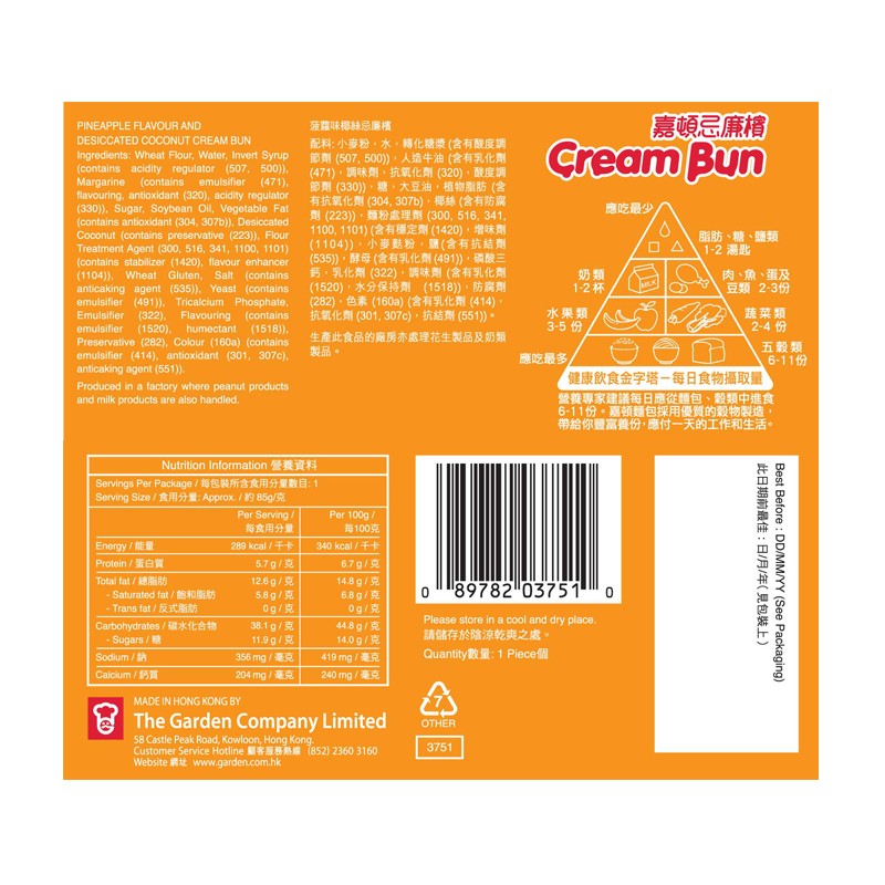嘉頓 菠蘿味椰絲忌廉檳 1 PC