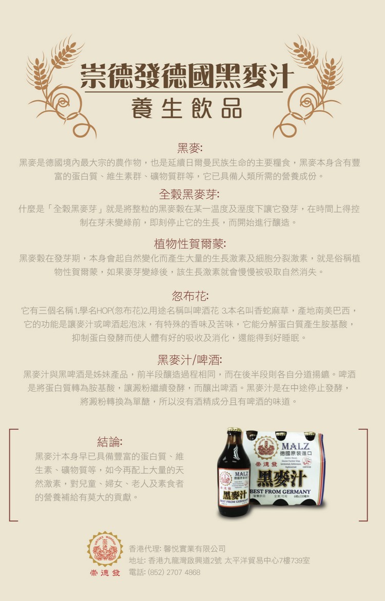 崇德發 天然黑麥汁 330 ML