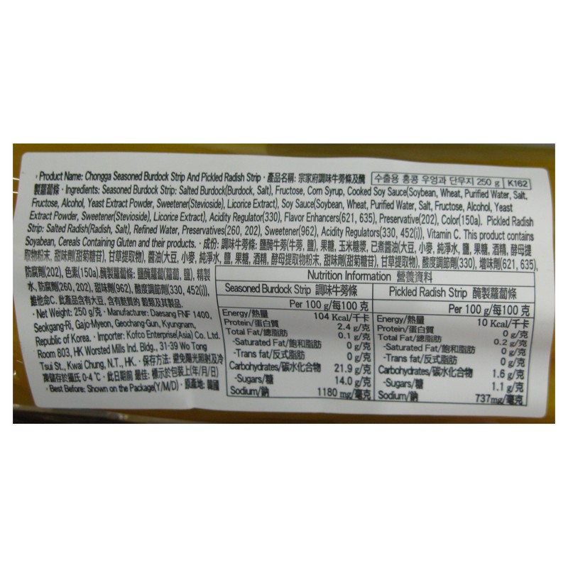 清淨園 清淨園調味牛蒡條及醃製蘿蔔條 250 GM