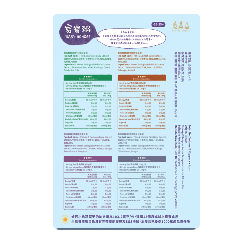 魚鱻森 魚鱻森寶寶粥4包裝 600 GM